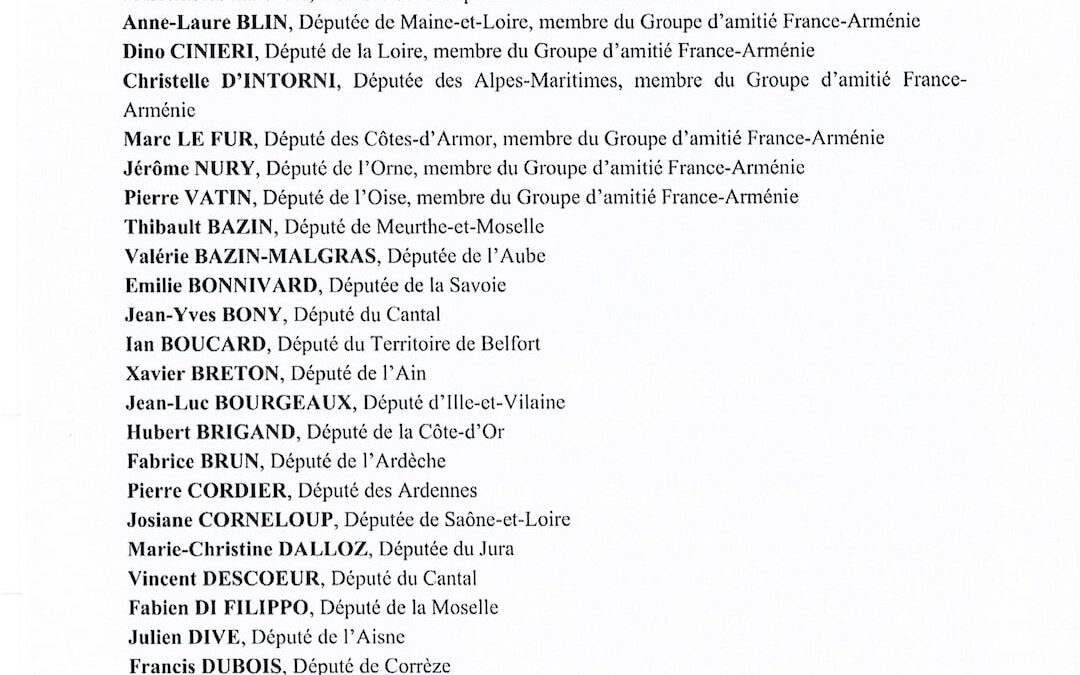 Courrier au Président de la République – Haut-Karabakh – E.ANTHOINE – A.MARTIN