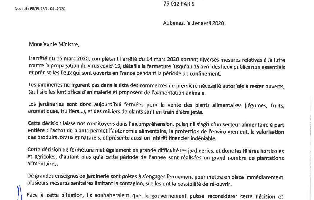 Let Le Maire (ouverture jardineries) 1 avril 20