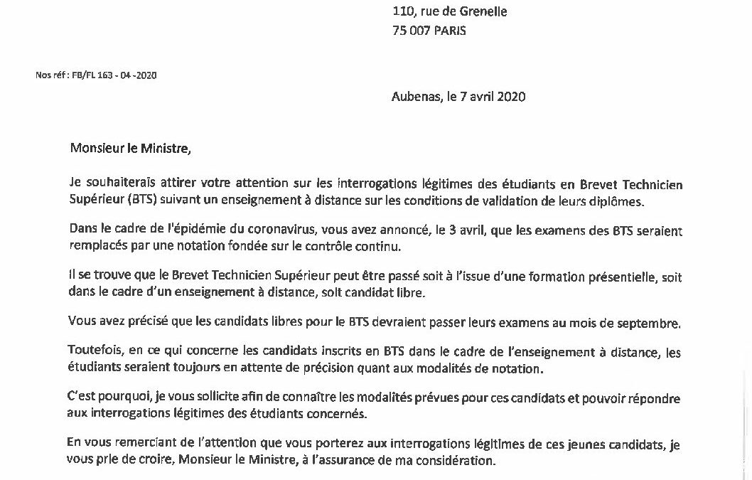 Let M Blanquer ministre (BTS enseignement à distance ) 7 avril 20