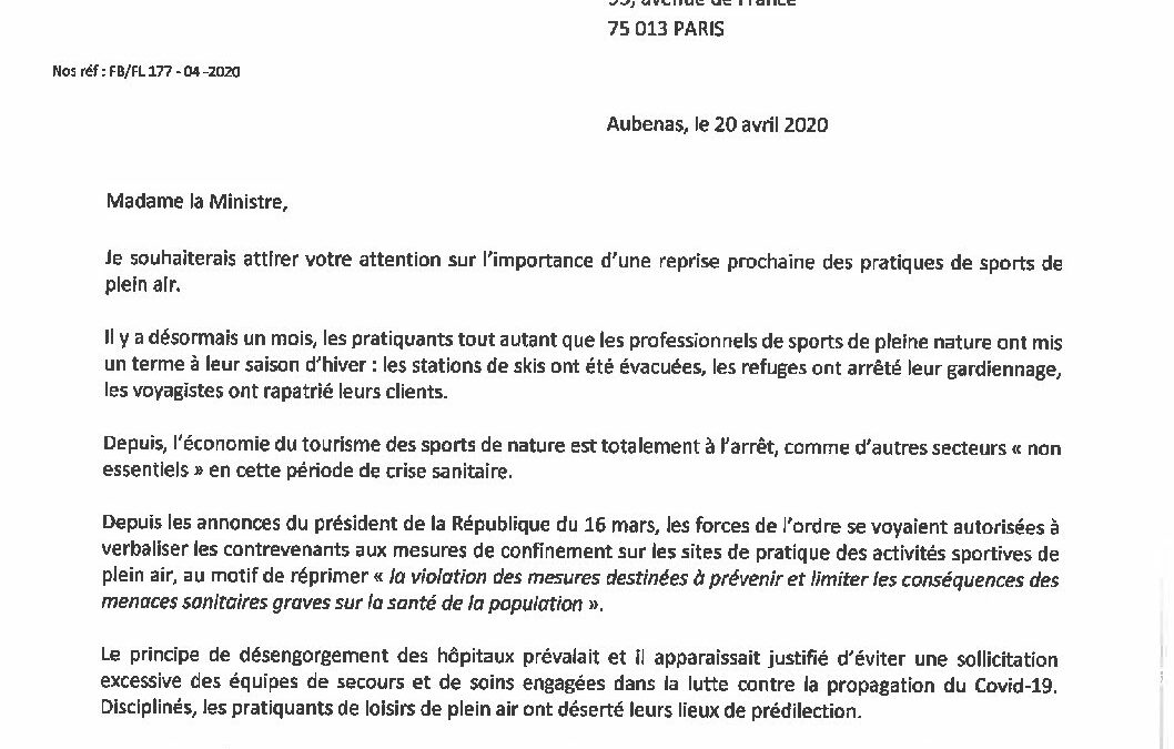 Let ministre des sports (sports plein air COVID) 20 avril 20