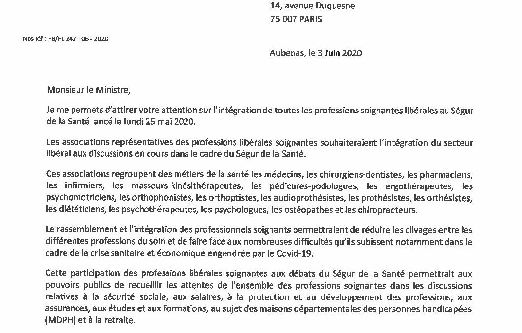 Let O VERAN ministre (professions soignantes Ségur de la Santé) 3 juin 20
