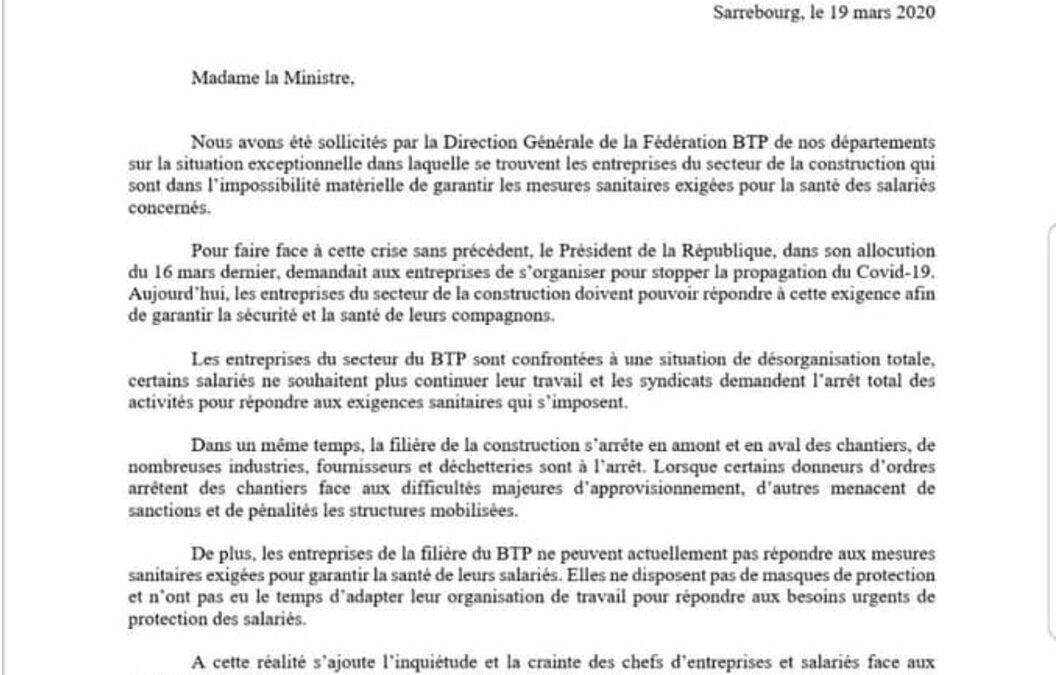 Lettre Penicaud BTP 19 mars
