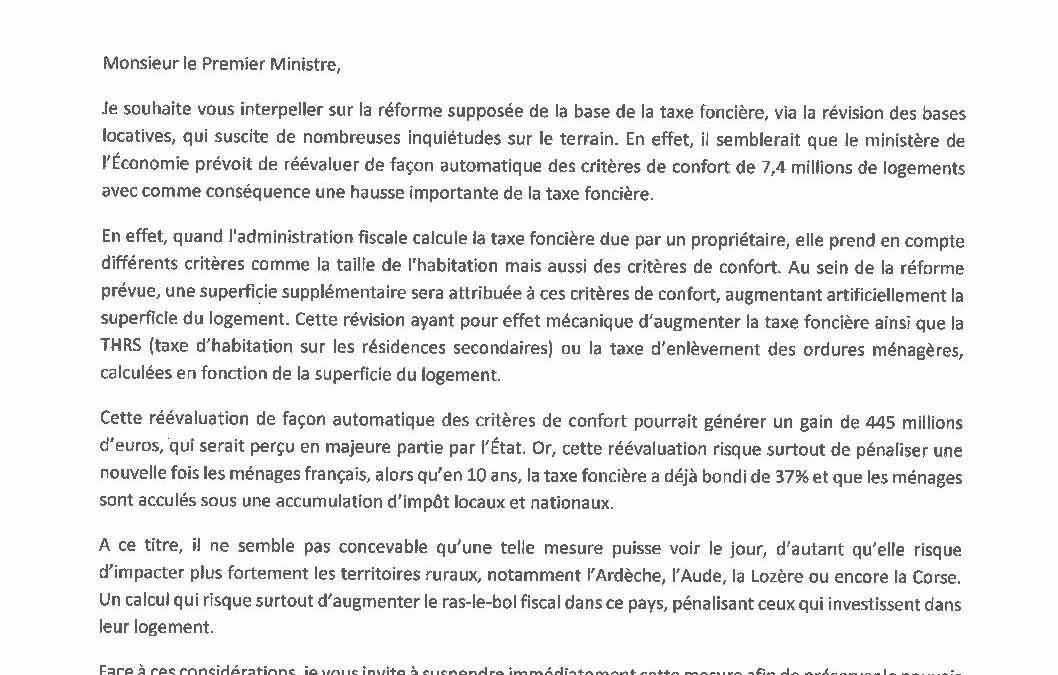 Courrier Fabrice Brun – Lecornu – Taxe foncieĚre