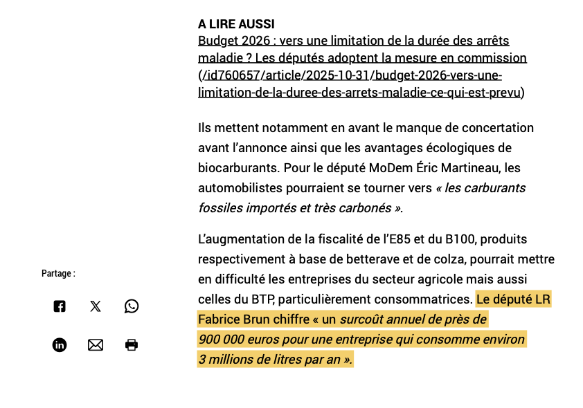 Budget 2026 : suppression de la hausse de la fiscalité sur les biocarburants