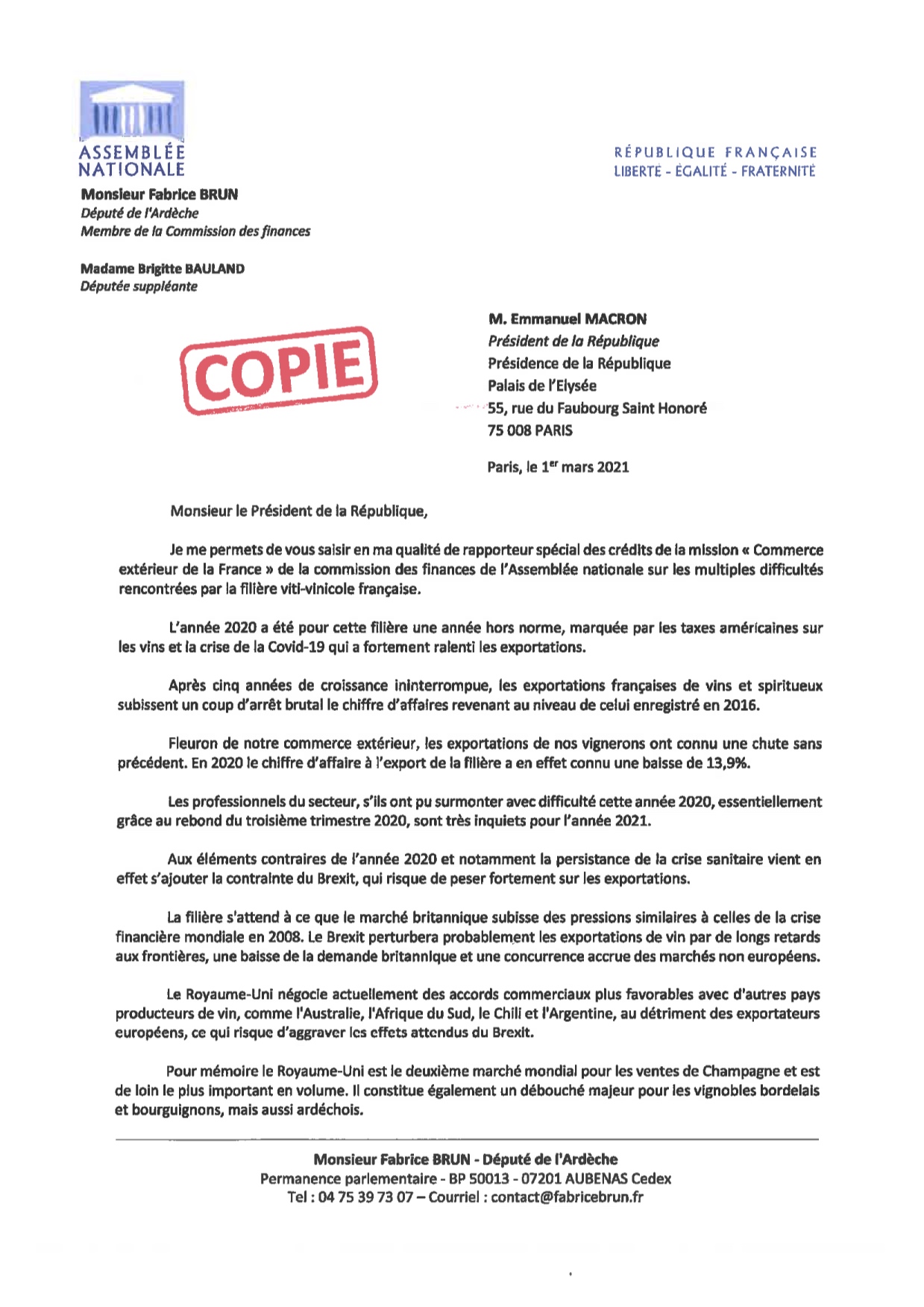 LETTRE PRESIDENT MACRON – VITICULTEURS