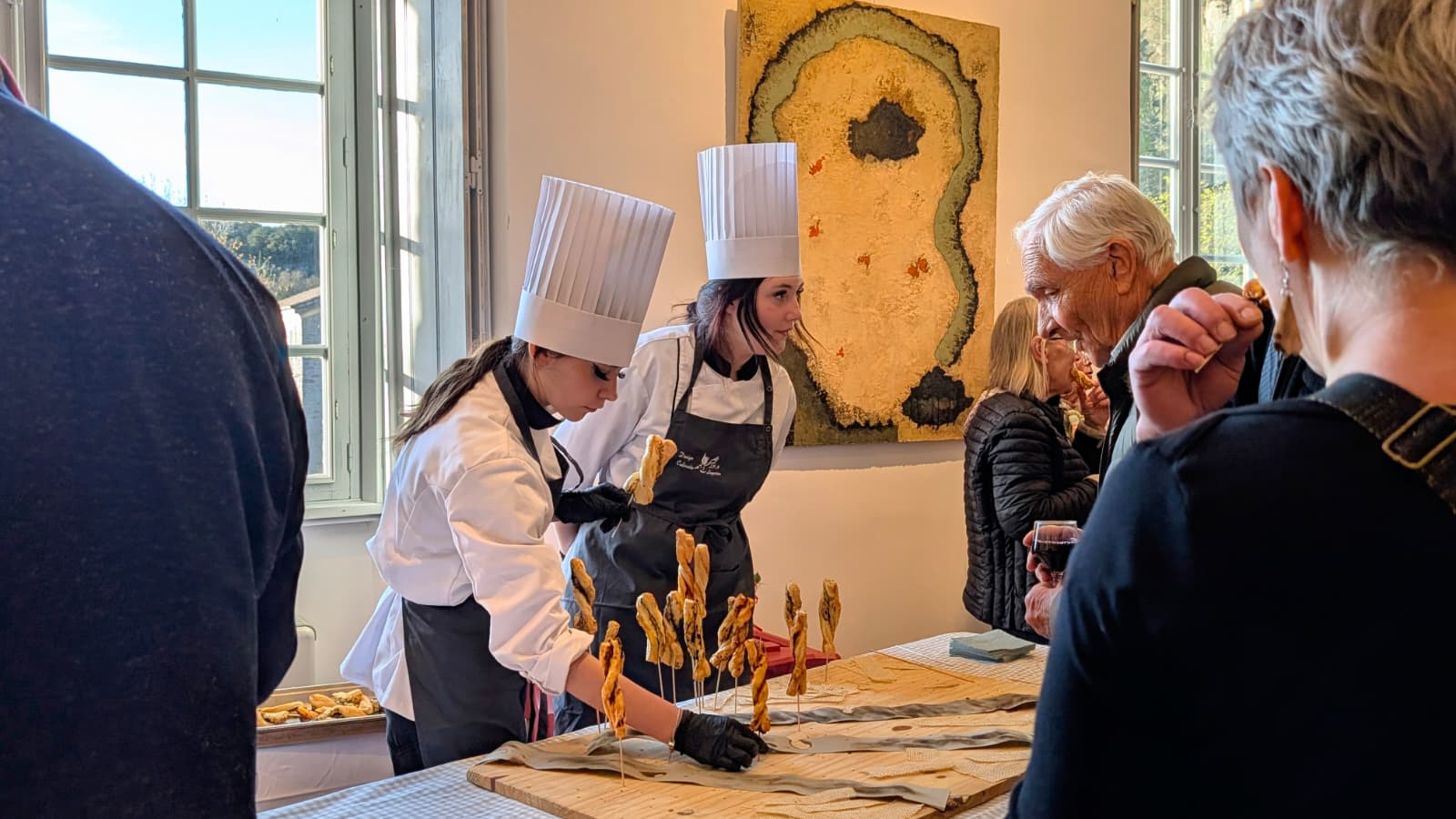 - à Vogüé, avec l’association Vivante Ardèche pour le vernissage de la 78ème exposition : “Dialogues” de Frédéric Mulatier et Elisabeth Gore. Bravo également aux jeunes apprentis du lycée hôtelier de Largentière qui ont donné une dimension artistique à leurs créations culinaires. La culture, une fenêtre ouverte sur le monde. https://www.chateaudevogue.net/expositions/frederic-mulatier-elisabeth-gore.php