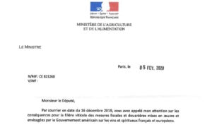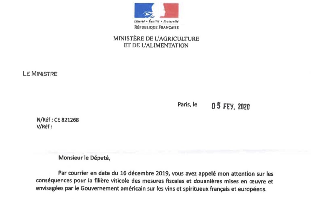 Let réponse Ministre agric (mesures fiscales douanieres) 5 fév 20