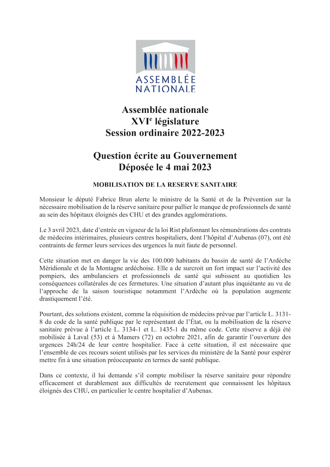 Permanence de Fabrice BRUN – Député de l’Ardèche – 22 avenue de Roqua – BP 50013 – 07201 AUBENAS Cedex