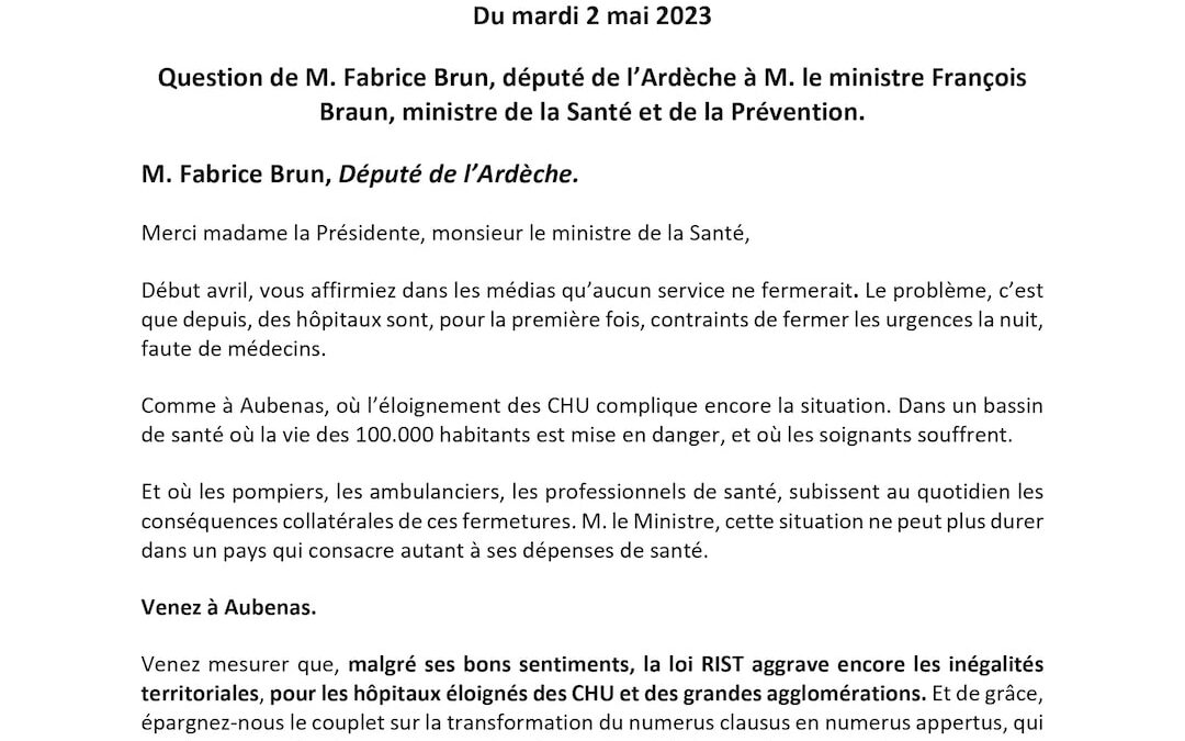 Permanence de Fabrice BRUN – Député de l’Ardèche – 22 avenue de Roqua – BP 50013 – 07201 AUBENAS Cedex