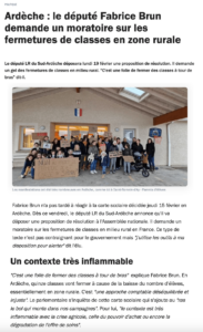 Permanence de Fabrice BRUN – Député de l’Ardèche – 22 avenue de Roqua – BP 50013 – 07201 AUBENAS Cedex