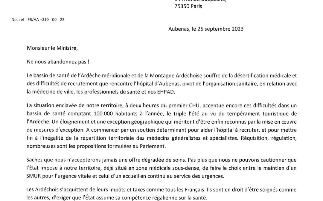 Courrier ministre de la Santé