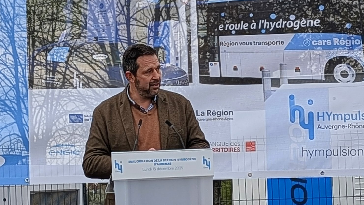 Aujourd’hui, l’Ardèche prend un temps d’avance avec la mise en fonction de la 1ère station de recharge hydrogène du Département de l’Ardèche, chez nous à Aubenas. La Région Auvergne Rhône Alpes pionnière de l’hydrogène, première déclinaison concrète avec nos enfants transportés dans des bus zéro émission de CO2.