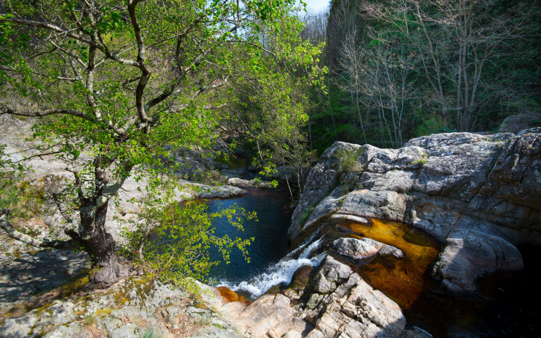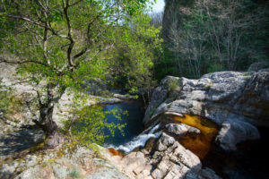 Flusslandschaft bei Jaujac in den Monts d’Ardéche in Frankreich