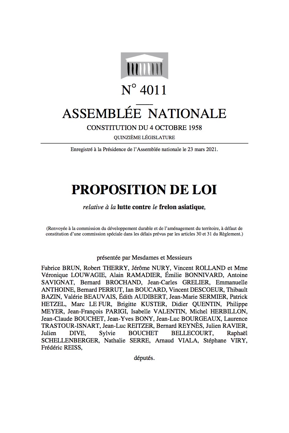PPL Relative à la luttre contre le frelon asiatique