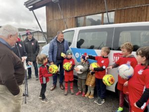 Remise des clés du minibus de l’A.S. Coucouron avec les enfants