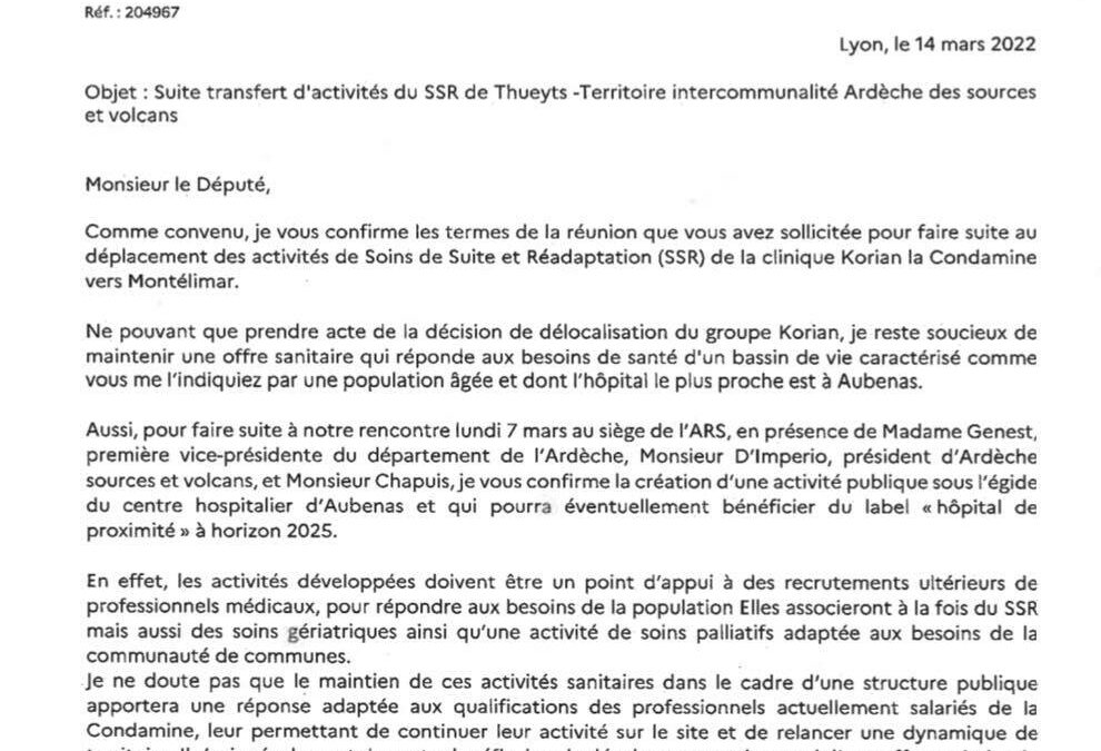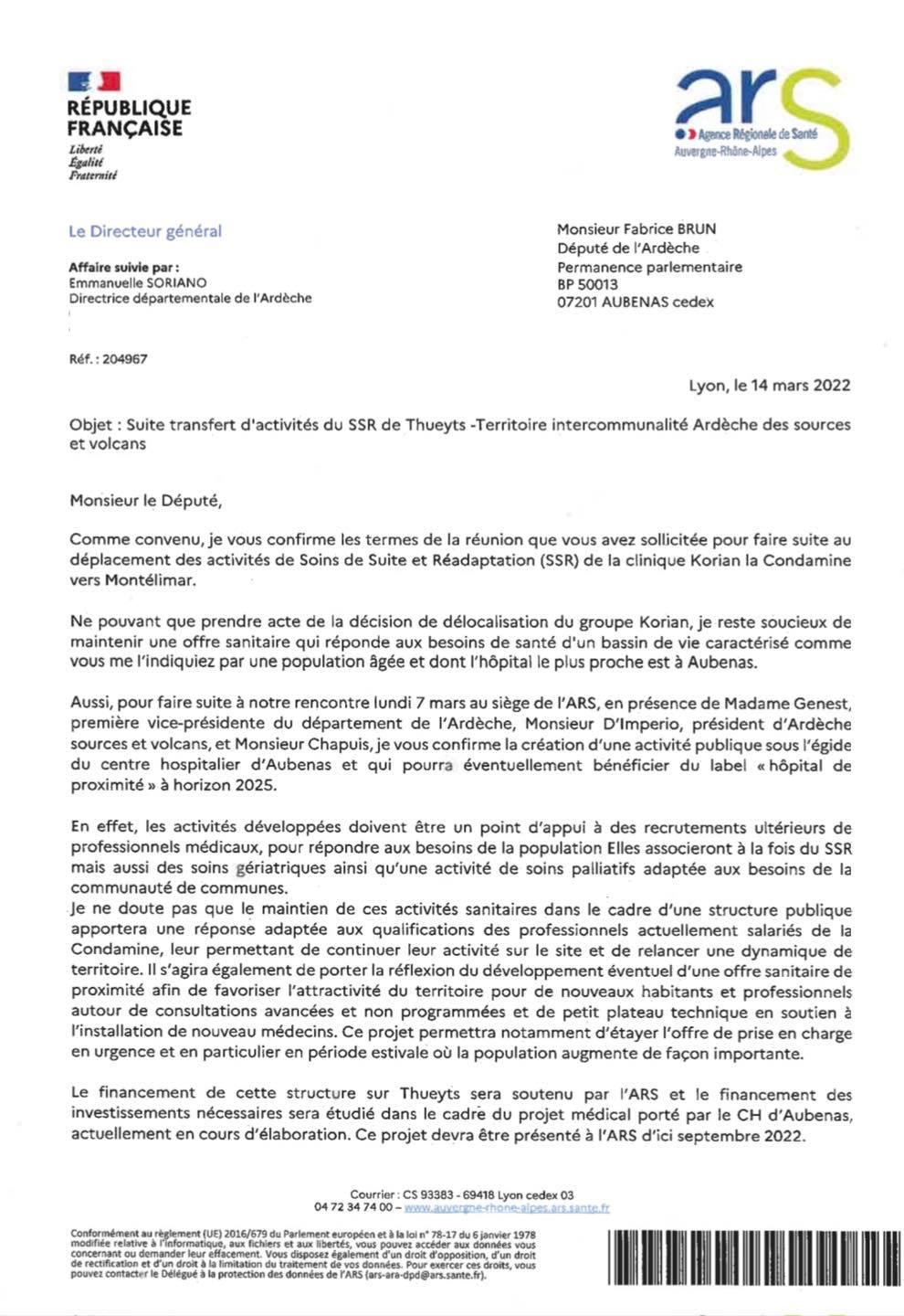 courrier ARS condamine