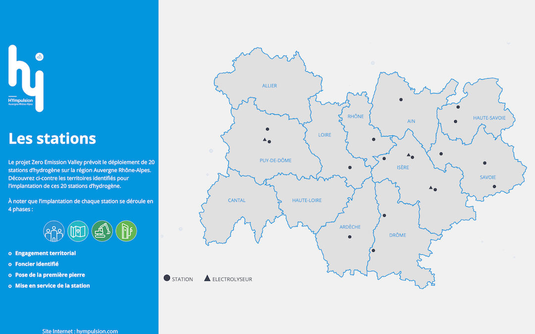 Carte des stations hydrogène en Auvergne-Rhône-Alpes