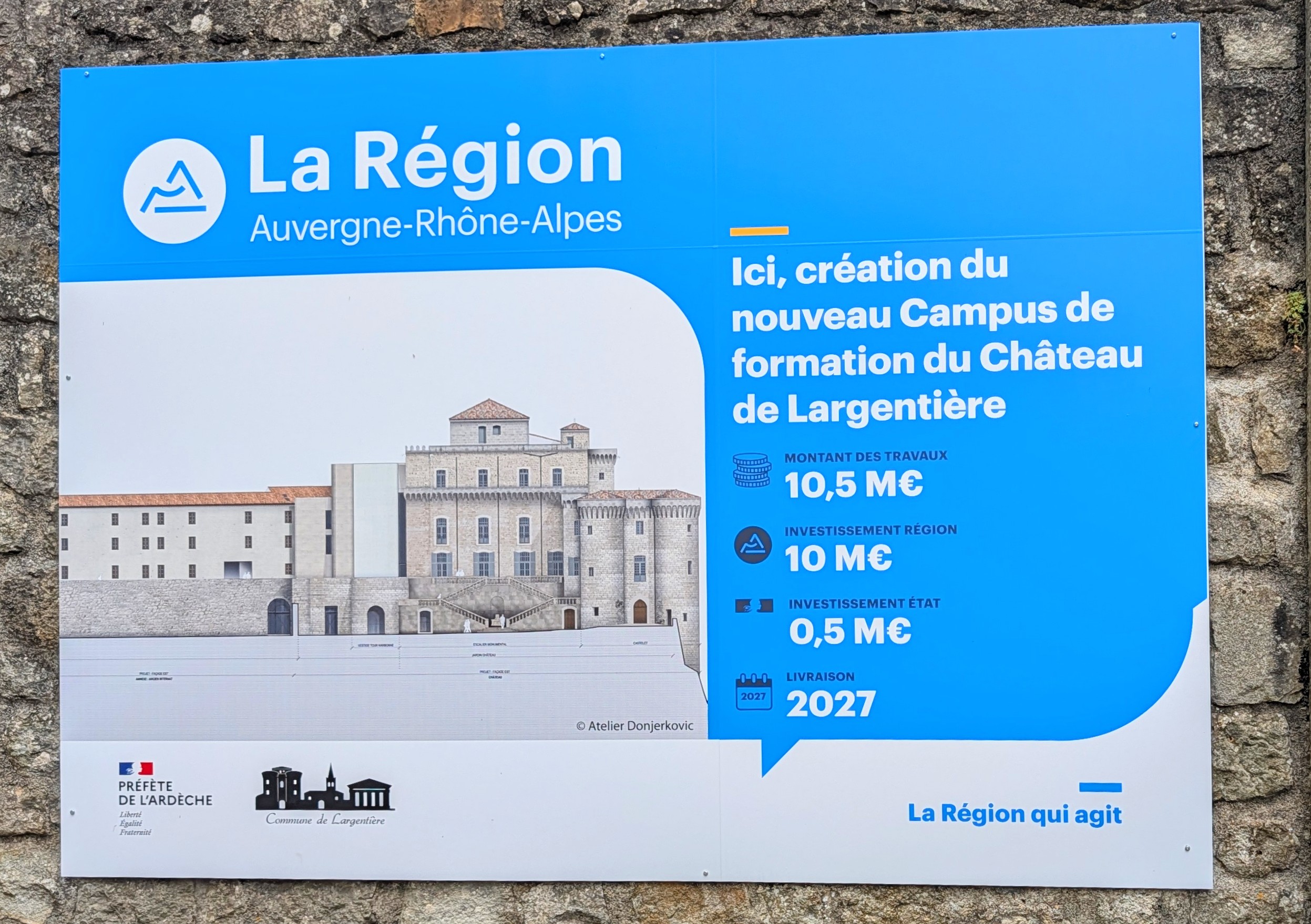 Retour sur un arrêt improvisé sur le chantier du château de Largentière en cours de rénovation. Avec le fort soutien de la Région Auvergne-Rhône-Alpes pour en faire un site à vocation économique et de formation.